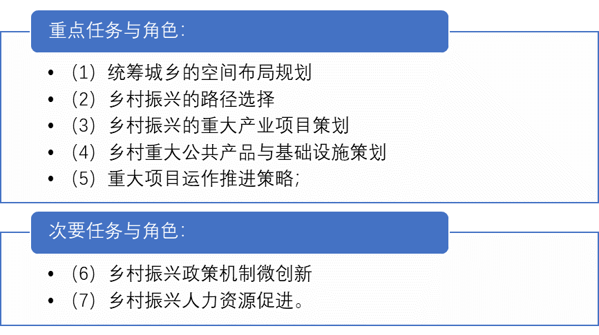 5、根據(jù)上述理論探索,我們將基層政府鄉(xiāng)村振興規(guī)劃最終任務(wù)與角色設(shè)定如下:
