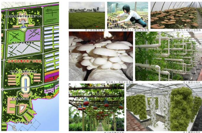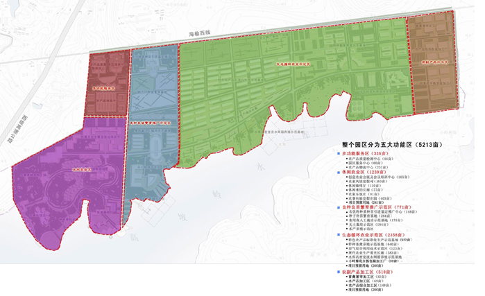 多功能服務(wù)區(qū);休閑農(nóng)業(yè)展示區(qū);良種良苗繁育推廣示范區(qū);生態(tài)循環(huán)農(nóng)業(yè)展示區(qū);農(nóng)副產(chǎn)品加工區(qū)