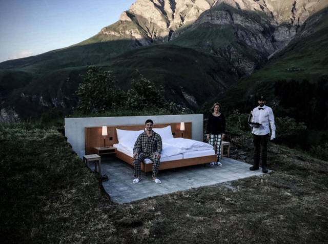 世界上有這樣一家酒店,足以顛覆我們對酒店的正常認(rèn)知,它沒有天花板,沒有墻壁,沒有衛(wèi)生間,只有...一張床! 嗯……你沒看錯,這真的是一家酒店,名叫Null Stern Hotel,位于瑞士阿爾卑斯海峽旁邊,格爾賓登州山的一片草地上。 酒店就位于這波瀾壯闊的自然景色中,什么落地窗,全景天窗,都弱爆了,這才叫做真正的與自然親密接觸! 酒店除一張床、床頭柜和兩盞臺燈外,什么都沒有!就連要上廁所,那也需要走出大約十分鐘的距離。 第一次試睡的時候,還做了專門的視頻拍攝,記錄著試睡員的心情,想必他們的心情一定是,amazing & exciting??! 至于衣帽間梳妝臺什么的,下床走幾步有間小木屋,酒店的服務(wù)員就住在這間小木屋里。 衣服就這么掛著,梳妝鏡也極其簡樸。 當(dāng)然,作為一個酒店,入住的客人還是會受到很好的照顧,會有專門的管家給客人提供各種服務(wù),例如早餐、紅酒之類的... 看到這里你是不是好奇,這樣一個腦洞大開的酒店,是哪位大神想出來的?沒錯,就是這兩位帥比概念藝術(shù)家Frank Riklin和Patrik Riklin。 創(chuàng)始人之一的Patrik Riklin稱,酒店只是他表達(dá)藝術(shù)的一種方式。他表示,“盡管這次的星空酒店房間,與以前房間有所不同,但它們的精神實(shí)質(zhì)是一樣的,把所有不必要的東西縮減到最少,讓顧客完全融入自然,專注于美麗的風(fēng)景和天空。” 酒店名稱“Null Stern”的意思是“沒有星星”,他們說,“我們的酒店不需要星級,唯一的星星就是你……” 就這么一個位于荒山野嶺,“啥都沒有”的酒店,躺在床上吹風(fēng)一夜的價(jià)格,大約1700人民幣。而且天天爆滿... 有人肯定會問,住這樣的酒店,如果半夜下雨了怎么辦?有蚊子怎么辦?要是狼來了怎么辦?!還有更重要的,如果情侶之間做點(diǎn)想做的事,就這么露著個天,這可如何是好?額...... 如果非要糾結(jié)這些,那這個酒店就沒了它獨(dú)一無二之處了,它的魅力就在于你對下一步的未知性,與其卓越,不如不同,他們做到了。