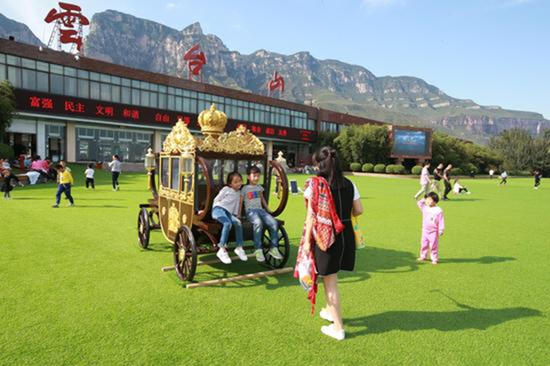 云臺(tái)山景區(qū)對(duì)百家?guī)r綜合服務(wù)中心進(jìn)行了改造提升,不僅在山門(mén)廣場(chǎng)鋪設(shè)了9000平方米的人工草坪,還增加了風(fēng)車(chē)擺件、噴泉、卡通造型等,儼然變成了一個(gè)歡樂(lè)的夢(mèng)幻樂(lè)園。