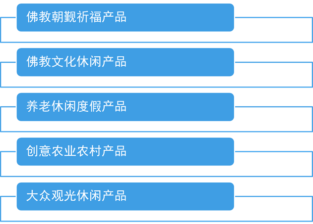 以“佛教休閑”為核心,涵蓋與聯(lián)動“農(nóng)業(yè)開發(fā)”、“傳統(tǒng)佛教朝覲祈福”、“一般性觀光游樂”、“養(yǎng)老產(chǎn)業(yè)”。
