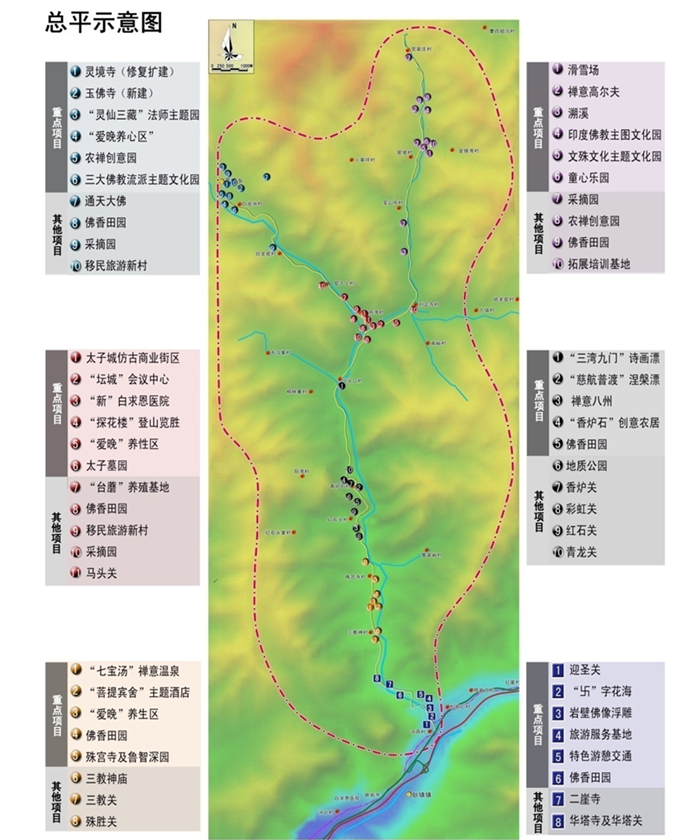 定位:依托靈境寺原文脈并借鑒“人間佛教”理念,打造成有所創(chuàng)新的祈福朝覲區(qū)。